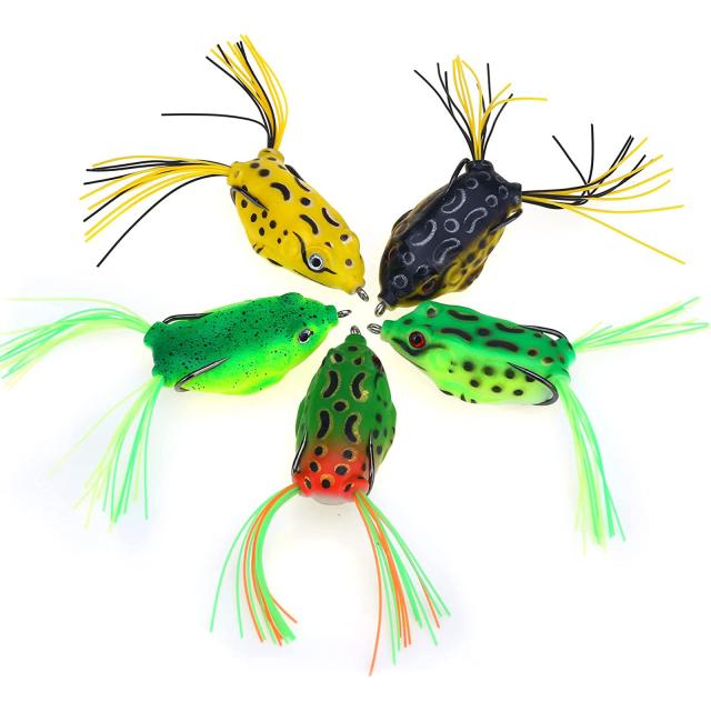 -- フックは非常に鋭く、各ルアーには鋭いトレブル フックが 2 つ付いており、強力なキャッチ ツールになっています。鮮やかな色、リアルなサイズのプロポーション、柔らかいシリコンにより、本物のカエルのように魚を引き寄せます。