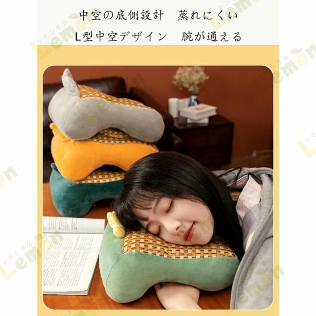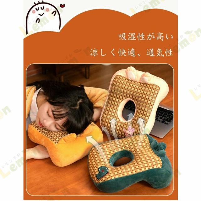 穴に腕を通せるようになっており、突っ伏して寝ても腕がしびれません。