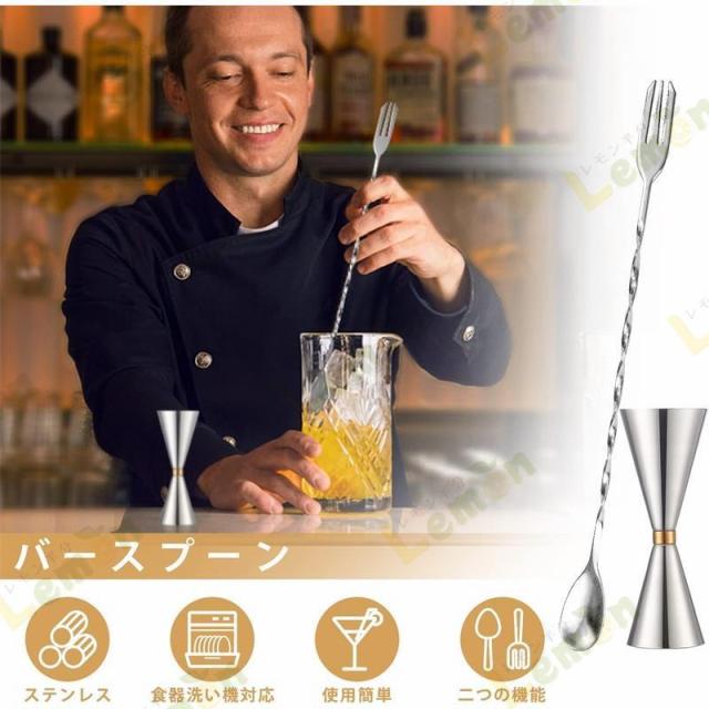 「おしゃれなバースプーン」スパイラルスプーンの螺旋グリップバーとスプーン+フォークの両用デザインでかくはん&取り出しなど色々な使いが便利になります。