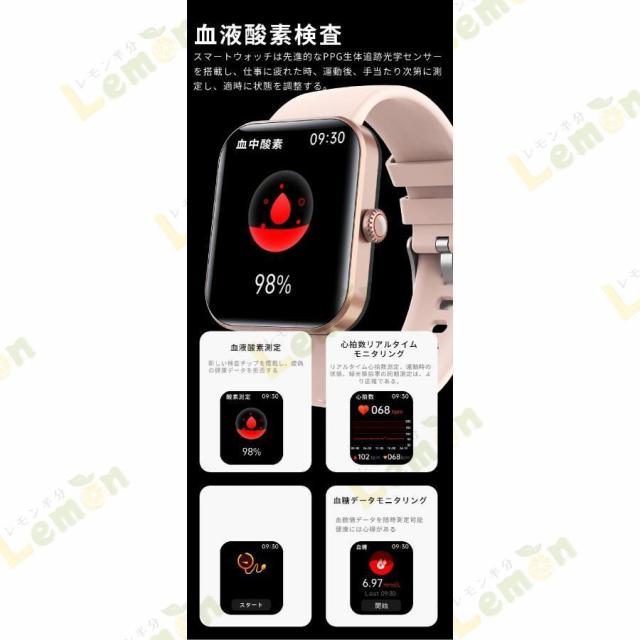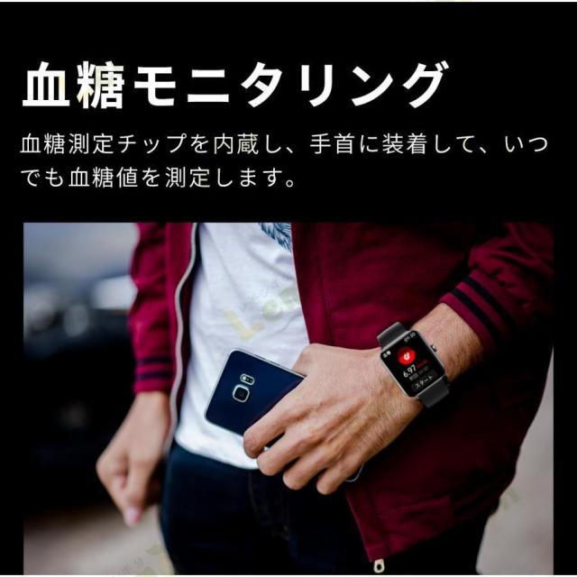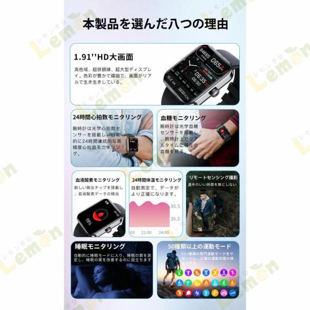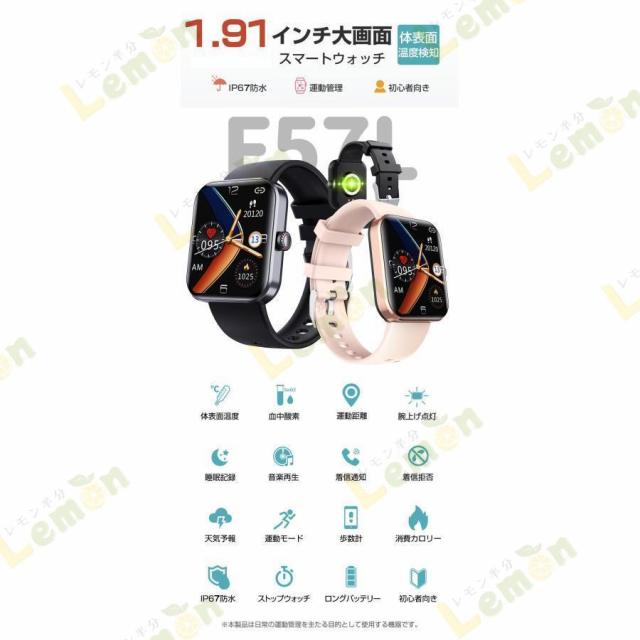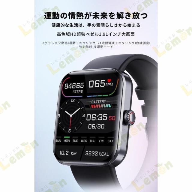 スマートウォッチ F57L 血糖値 血中酸素 通話機能 体温測定 レディース メンズ 音楽プレーヤー IP67防水 1.91インチ大画面 腕時計 歩数計 血圧測定