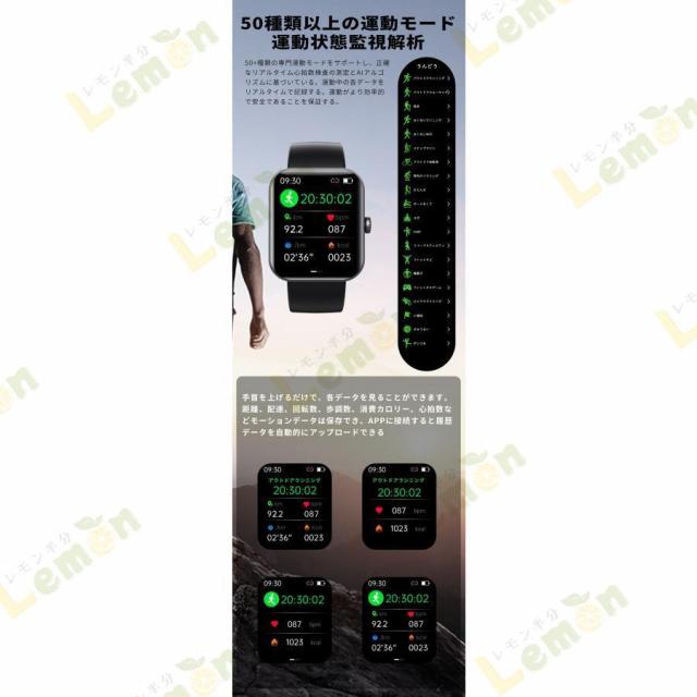 ★フル機能:血中酸素、心拍数、カロリー、体温、携帯探し、腕上げ点灯、睡眠モニタリング、座りすぎ通知、着信通知、天気、アラーム、運動をトラッキング、カスタム壁紙、多種類運動モード。接続が簡単。