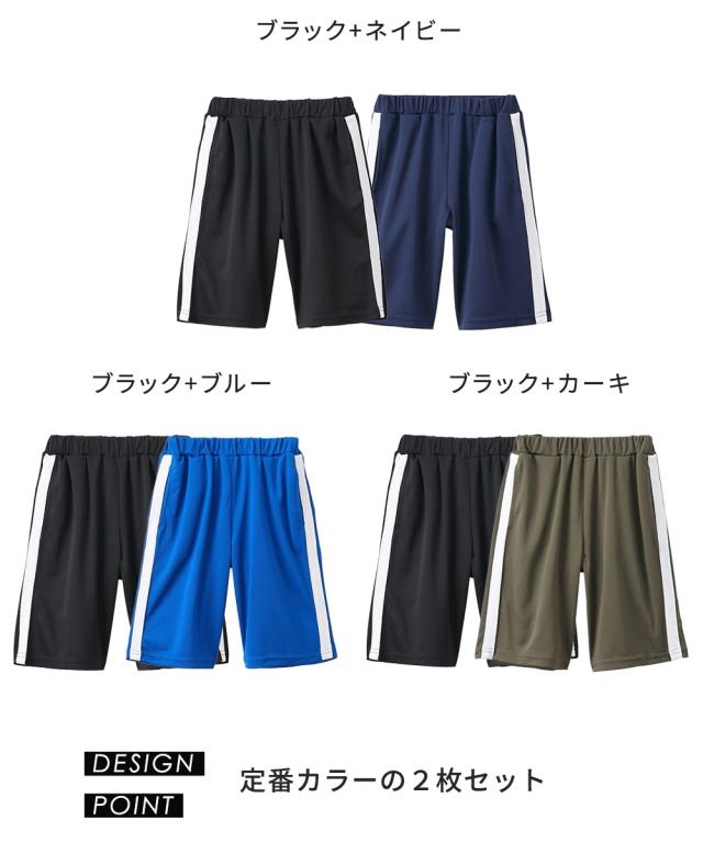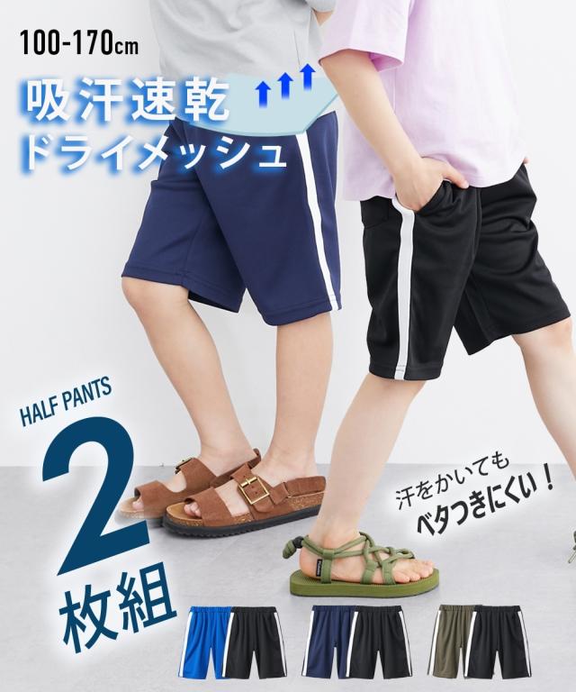 パンツ キッズ 吸汗速乾 ドライ メッシュ サイドライン ハーフ 2枚組 男の子 女の子 子供服 ジュニア服 夏 身長140/150/160cm