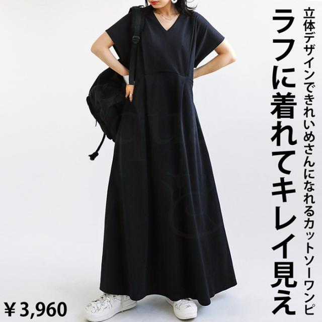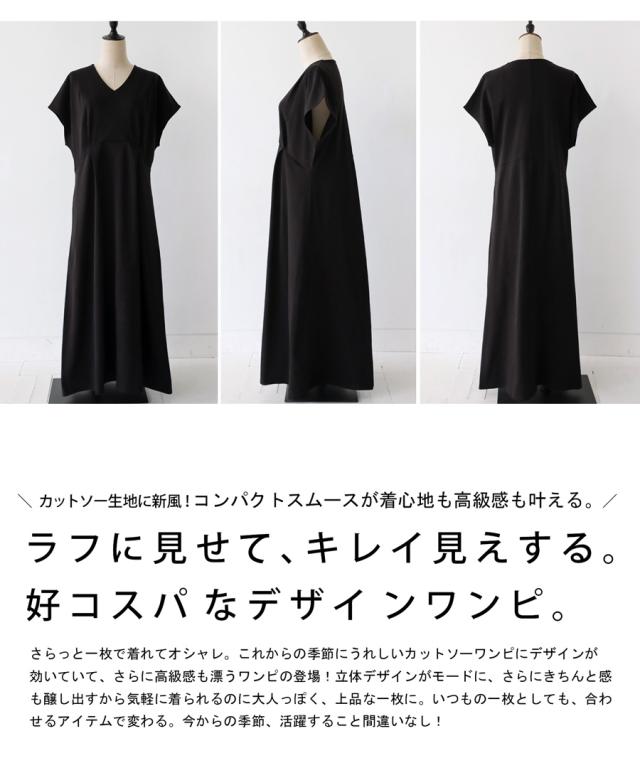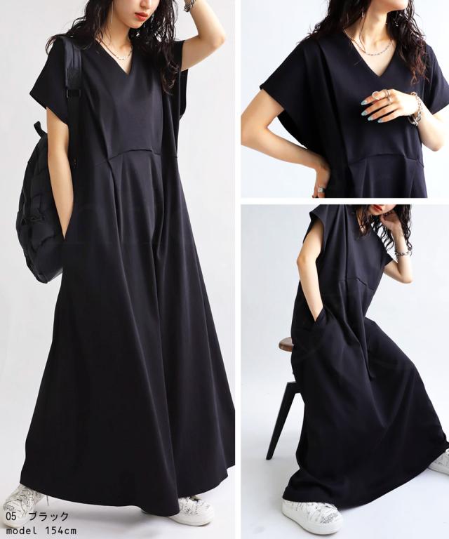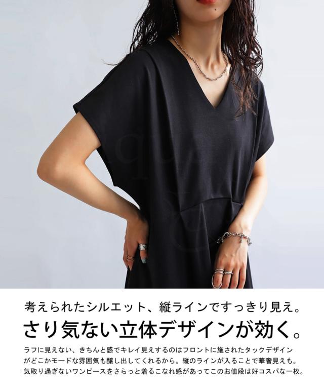 【検索ワード】ワンピース レディース 半袖 ロング 無地 綿100 Vネック ゆったり きれいめ カットソー カットソーワンピ シンプル 上品 高級感 切替え タック 立体感 モード 綿 コットン ロングワンピ ワンピ 着痩せ 細見え 体型カバー 大きめ 大きいサイズ ラフ 楽ちん ポケット付き antiqua アンティカ 大人 おしゃれ 10代 20代 30代 40代 50代 60代 春 夏 お洒落 カジュアル かわいい かっこいい あんてぃか