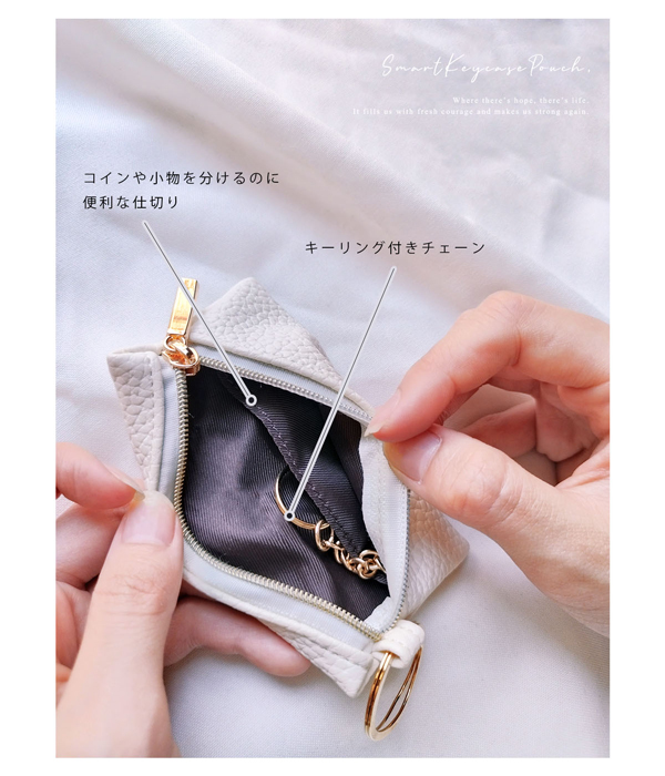 スマートキーや家のカギだけでなく、小銭、リップ、目薬など