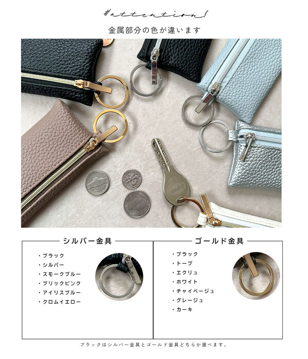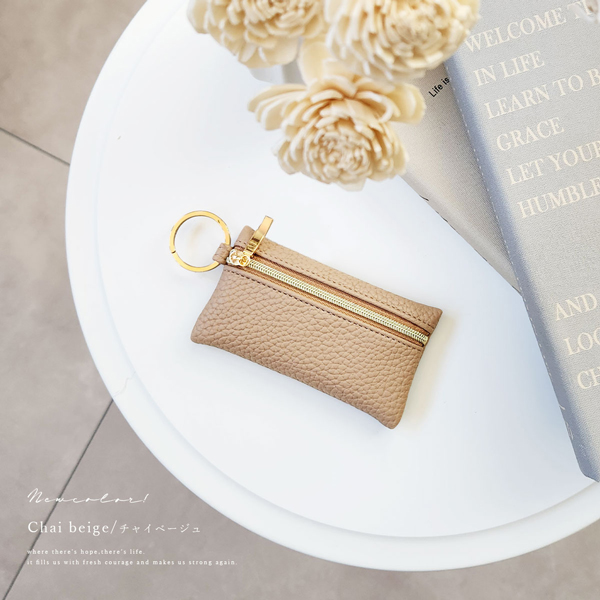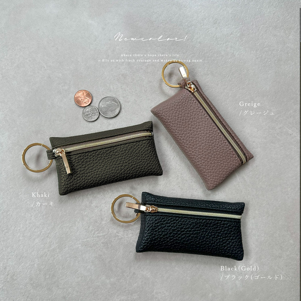 - 小銭入れ用にトープを選んで購入しました。思っていたより小さかったですがバッグに入れても邪魔にならないし、ゴールドの金具と本体の色がマッチして安っぽく見えないので気にいっています。