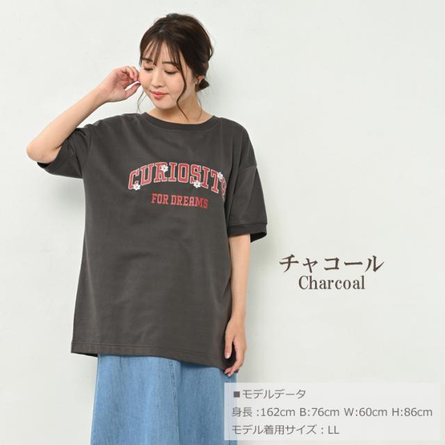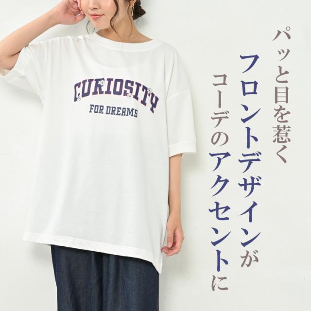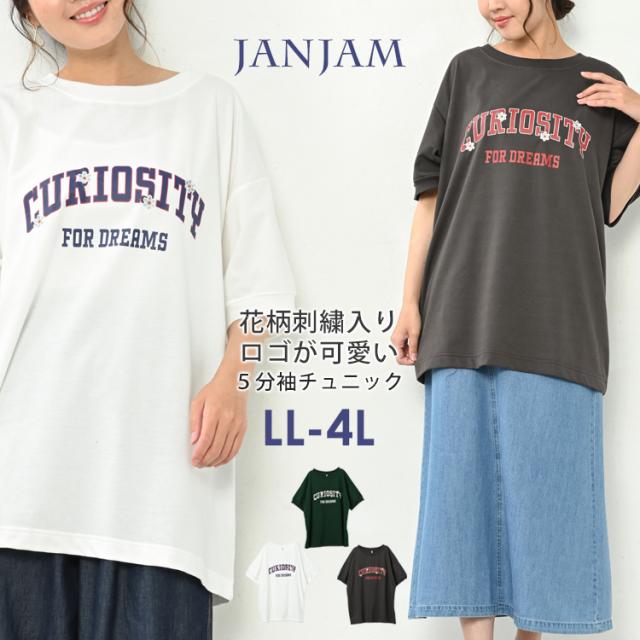 大きいサイズ レディース チュニック ロゴプリント メール便対応 半袖 カットソー トップス LL/3L/4L ゆったりサイズ ぽっちゃり女子 プラスサイズ