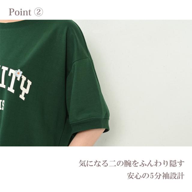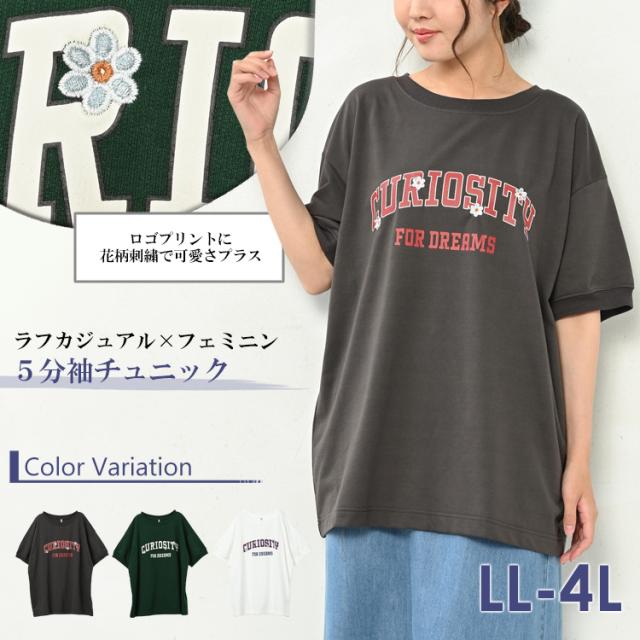 【メール便対応】ゆったりシルエットのロゴチュニック。 半袖トップス 30代 40代 50代 春服 夏服 秋服 春物 夏物 秋物 お尻すっぽり丈 体型カバー おしゃれ きれいめ かわいい ゆったりサイズ ぽっちゃり女子 プラスサイズ 大きいサイズ レディース 半袖トップス 半袖チュニック 半袖Tシャツ 半袖カットソー ロゴチュニック ロゴTシャツ ロゴプリント 花刺繍 半袖 Uネック クルーネック ラウンドネック 丸首 春服 夏服 秋服 春物 夏物 秋物 春トップス 夏トップス 秋トップス 春Tシャツ 夏Tシャツ 秋Tシャツ ロゴT 白T ミニ裏毛 リブ袖 袖口リブ お尻すっぽり丈 お尻が隠れる着丈 チュニック丈 二の腕カバー 体型カバー ゆったり 大きめ 大人 カジュアル フェミニン リラックス ナチュラル アクティブ きれいめ かわいい かっこいい 着こなし おしゃれ 定番 春コーデ 夏コーデ 秋コーデ ファッション 大きめ 女性 婦人用 ミセス 30代 40代 50代 2023 春 夏 秋 灰色 白 緑 LL 3L 4L 13号 15号 17号 cla-ssa-tp0168