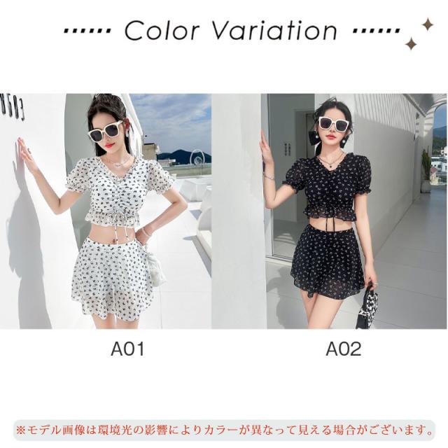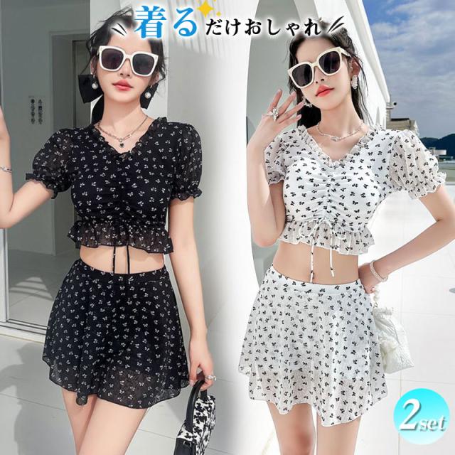 水着 高校生 中学生 レディース 2点セット プール 花柄 可愛い 体型カバー 大きいサイズ 母 おしゃれ セパレート リゾート