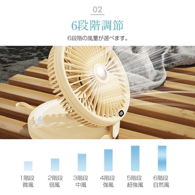 扇風機 多機能 デスクランプ ファン 卓上 壁掛け 2WAY仕様 5枚羽根 6段階風量調節 自然風 小型 シールフック付き ストラップ付き 【PL保険加入済み製品・安心】