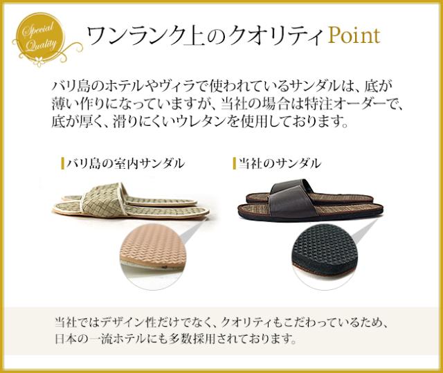 ※バリのヴィラやホテルの室内で使用するために作られているため、一般的なサンダルより耐久性に劣ります。ベランダやバルコニー、トイレなどで履く程度でご使用ください。