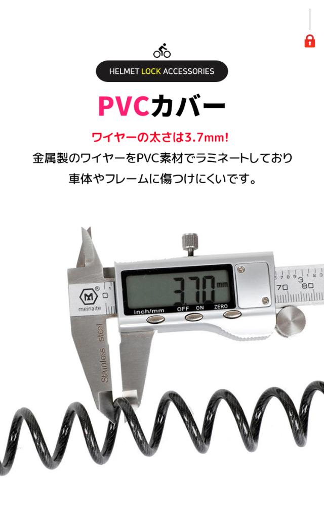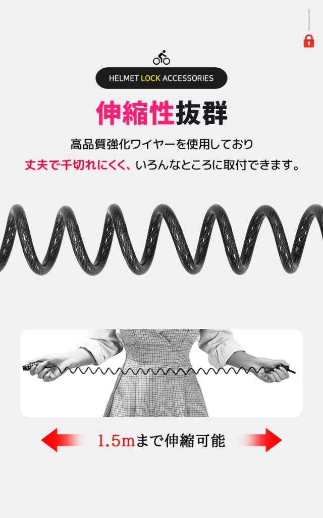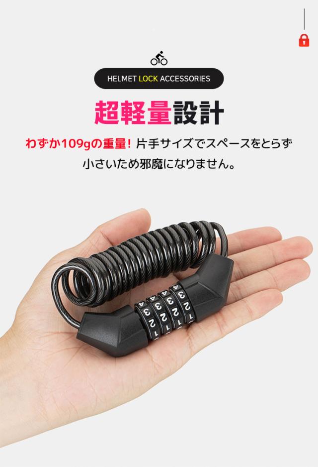 - 車体にヘルメットとつなげて、ヘルメットの盗難防止にも最適。