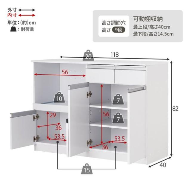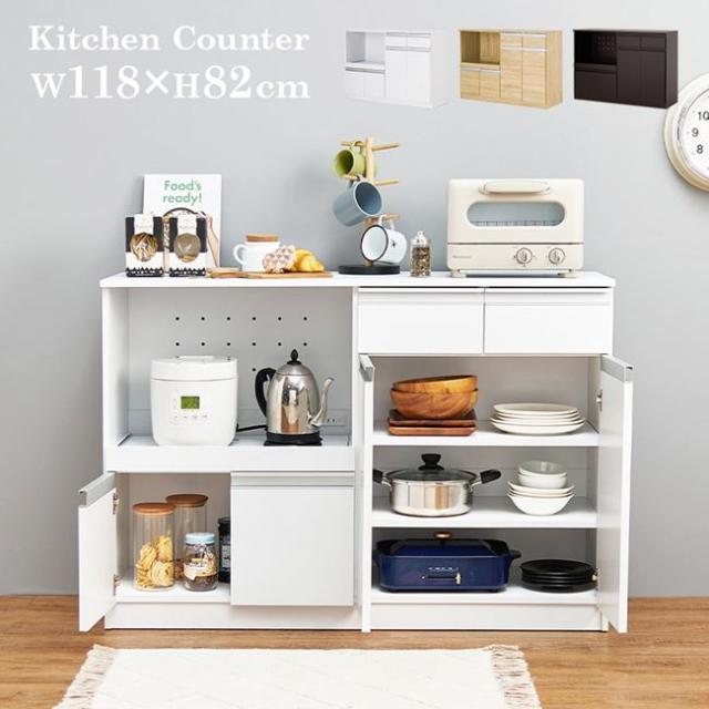 食器棚 レンジ台 キッチンカウンター 幅118cm 大容量 おしゃれ キッチン収納 キャビネット