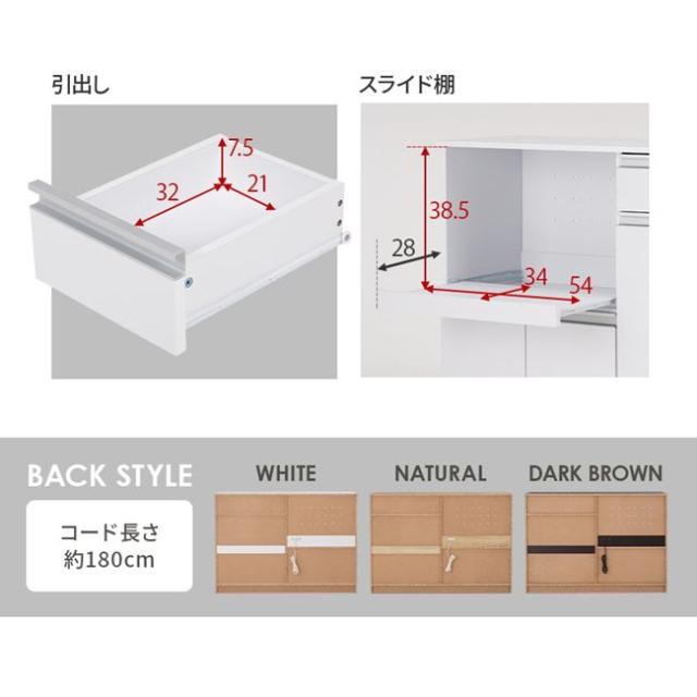 素材:主材:プリント紙化粧パーティクルボード、天板・スライド棚:合成樹脂化粧パーティクルボード、取手:スチール