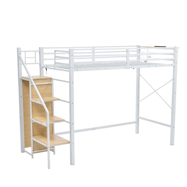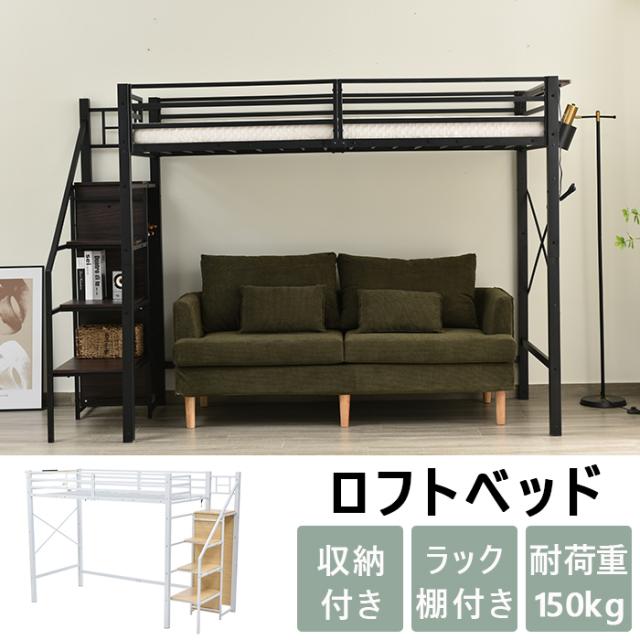 「クーポン配布中」ロフトベッド 階段付き パイプベッド システムベット 收納棚付き 耐震ベッド シングル コンセント付き ラック棚付き 子供ベッド二段ベッド 子供部屋二段ベッド スチール 北欧風 新生活応援