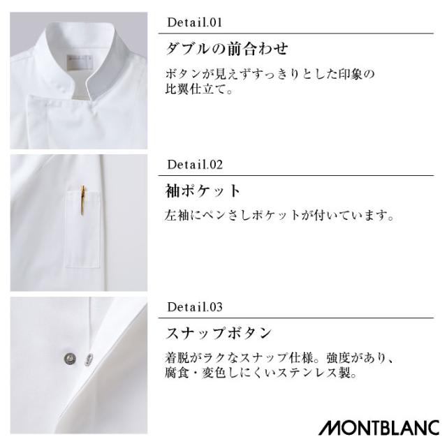 住商モンブラン コックコート 長袖 男女兼用 調理服 白衣 厨房 レストラン ホテル ベーカリー カフェ 洋食 シェフ 飲食店 サービス ユニフォーム 制服 おしゃれ メンズ レディース SS S M L LL 3L 白 黒 グレー ネイビー sm-6-1001