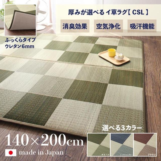 い草ラグ CSL 幅140 奥行200cm ふっくらタイプ 裏地 ウレタン 6mm厚 ブラウン グリーン グレー 国産 イ草 和モダン おしゃれ 和室 和風 モダンデザイン ラグマット 寝ござ 寝ゴザ 夏用 TATAMI