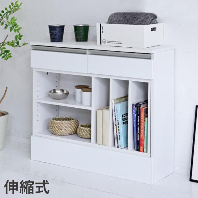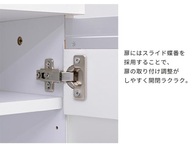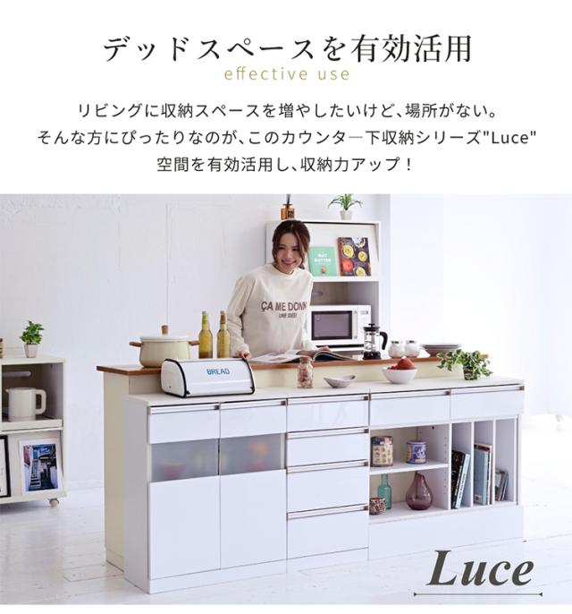 カウンター下のデッドスペースを有効活用できる収納シリーズ“Luce”。鏡面仕上げで高級感をプラスするシンプルなキャビネット。収納するものに合わせて棚位置を変えられる可動棚タイプ。扉を閉めれば収納物が見えないので、見た目もすっきり。
