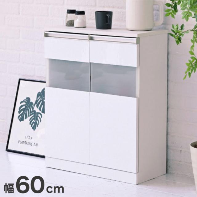 カウンター下収納 サイドボード 幅60 鏡面仕上げ 白 ホワイト 扉収納 キャビネット 食器棚 すりガラス スリム コンパクト リビング収納 カウンター下 収納 北欧 おしゃれ(代引不可)【送料無料】