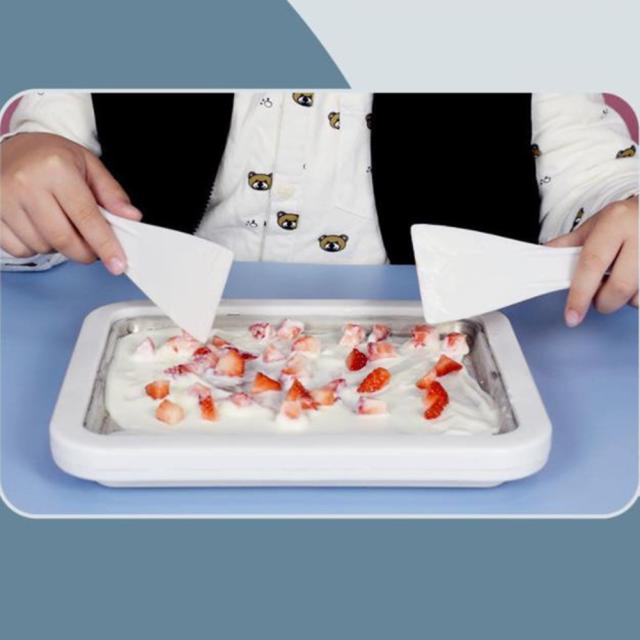 使い方は簡単、材料を入れてアイスシャベルでかき混ぜ、固まるまで5分ほど待つだけ
