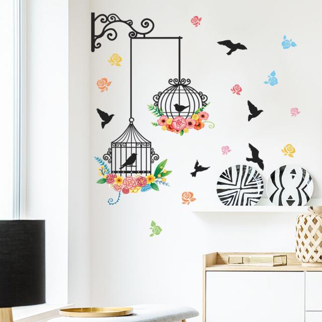鉄の鳥かごの花の壁のステッカークリエイティブ壁デカール家の装飾壁紙寝室用リビングルームポーチ