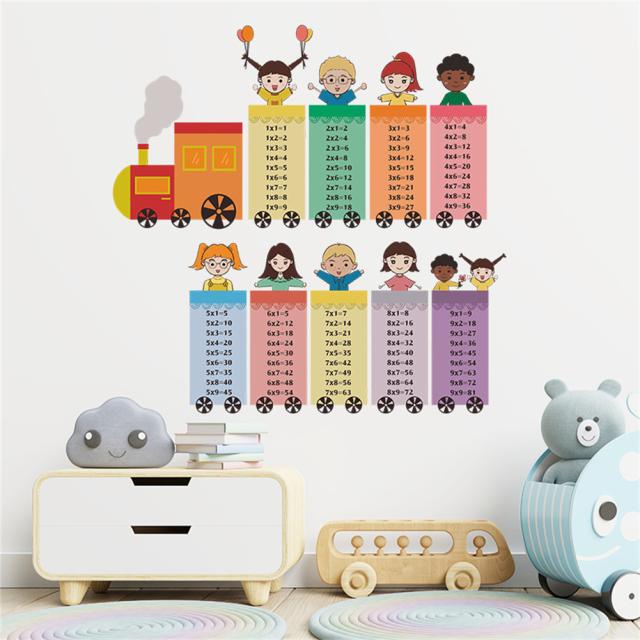 2 枚の漫画の列車デジタル乗算表ウォールステッカー自己粘着壁画キッズルーム保育園の装飾