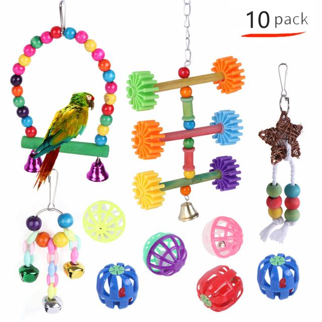 10 個のペットの鳥木製おもちゃセットオウムカラフルなぶら下げ耐摩耗性ケージスイングブリッジ鳥用品