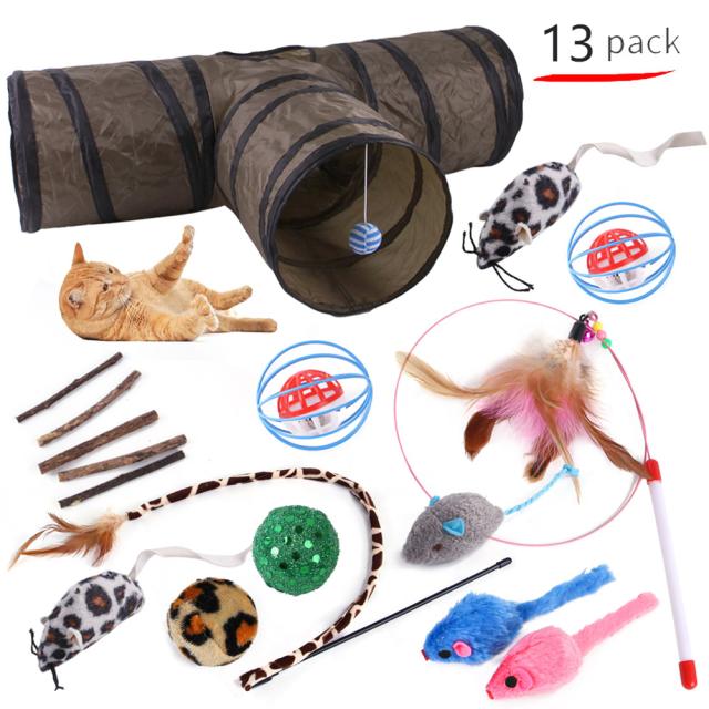 -- お買い得な猫のおもちゃ: 13個セットの猫のおもちゃ。折りたたみ可能な猫のトンネル、ケージボール、フェザー、マウス、スパンコールボールなどが付いています。