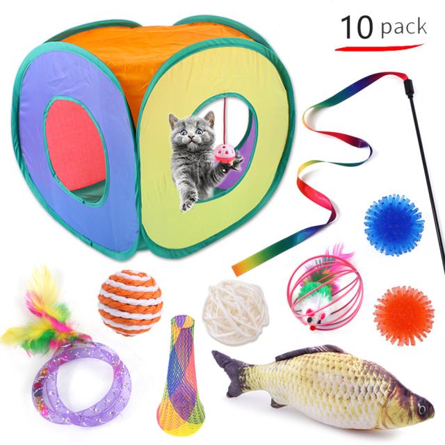 -- 超お得な猫パッドおもちゃ: 全部で 10 個の猫のおもちゃ。猫のテント、猫の杖、フナのおもちゃ、とげのボールなどを完備しています。
