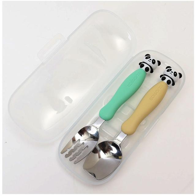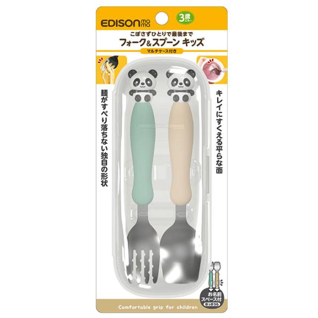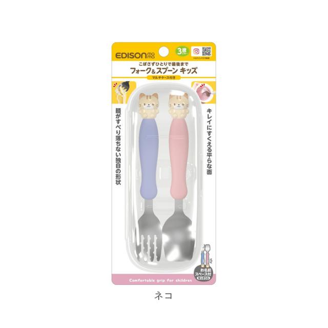 EDISON エジソン フォーク スプーン セット 子供 通販 フォーク&スプーン フォークスプーンセット フォークスプーン 子供用フォークスプーン マルチケース ケース付き 動物 ネコ ねこ 猫 滑りにくい 平ら キッズ 子ども こども かわいい 贈り物 ギフト