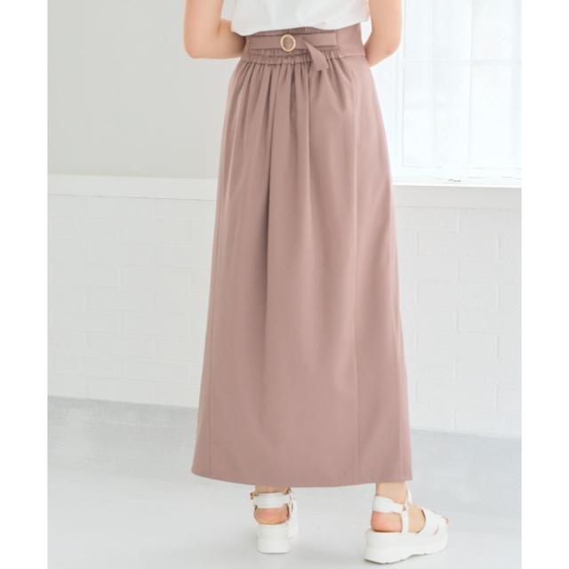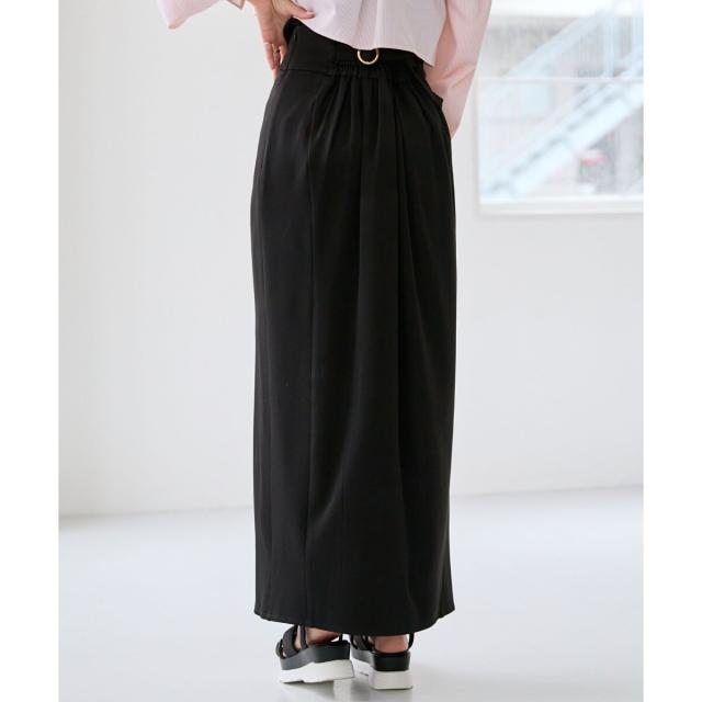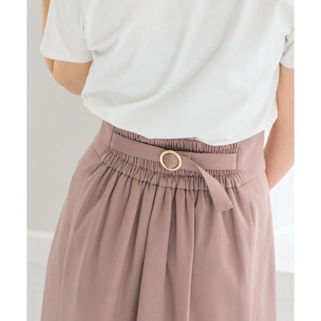 バックウエストのバックルと、深めのスリットで抜け感をプラスし大人な雰囲気に。