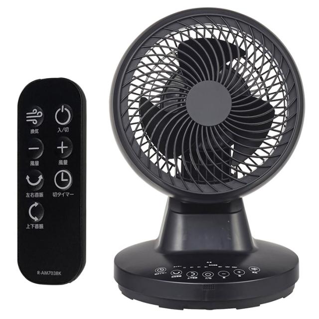 サーキュレーター DCモーター 3枚羽根 20畳 3D首振りリモコン付き YCL-D1536EFR K ブラック