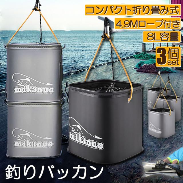 釣り バケツ バッカン 水汲み みずくみバケツ 釣り 3個セット 折りたたみ バケツ 8L 魚が逃げない ロープ EVA 海釣り 生かしバケツ 釣り 水くみバケツ アウトドア コンパクト