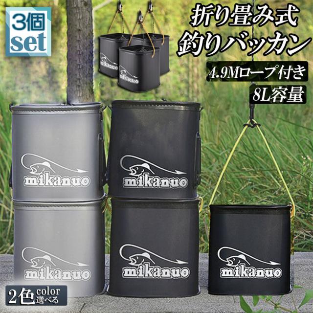 釣り バケツ バッカン 水汲み みずくみバケツ 釣り 3個セット 折りたたみ バケツ 8L 魚が逃げない ロープ EVA 海釣り 生かしバケツ 釣り 水くみバケツ アウトドア コンパクト