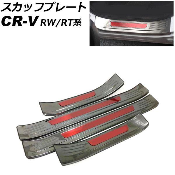 スカッフプレート ホンダ CR-V RW1/RW2/RT5/RT6 ハイブリッド可 2018年08月〜2022年12月 ブラック×レッド ステンレス製 外側 入数:1セット(4個) AP-SG301-BKRD