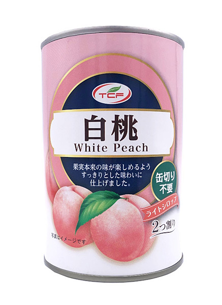 白桃の種と皮を取り除き、2つ割りにしシラップづけした商品です。