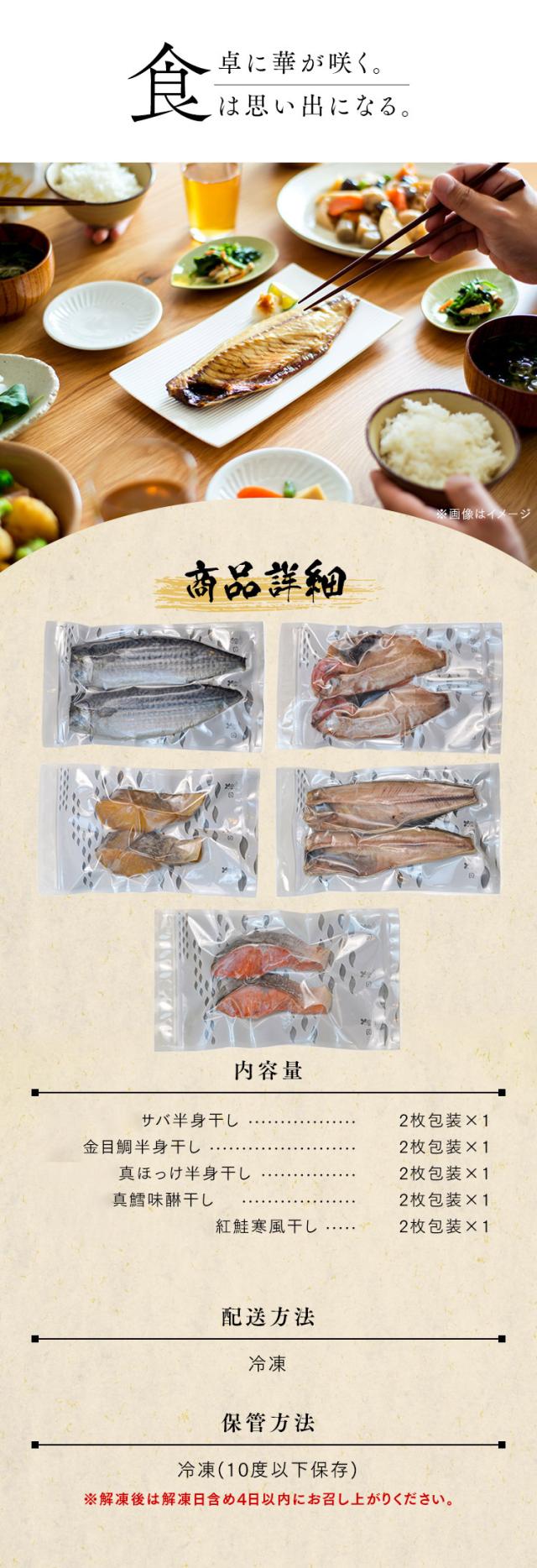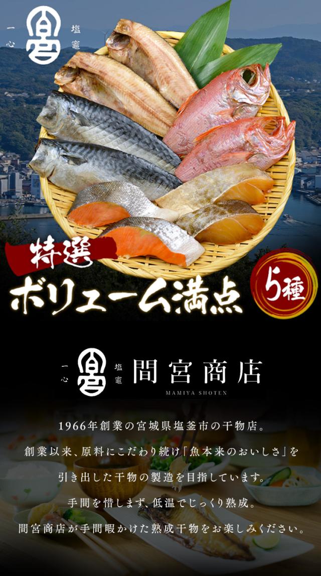 特選干物セット HK10-GP [代引不可] 干物 鯖 詰め合わせ ホッケ ひもの 間宮商店 宮城県 塩竃市 塩釜市 さば 金目鯛 真ホッケ 紅鮭 真鱈 送料無料