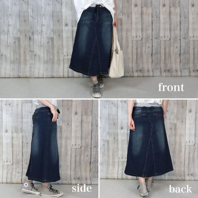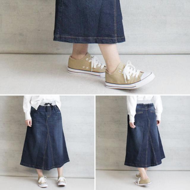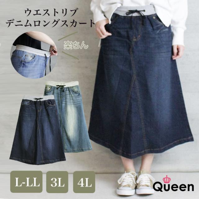 大きいサイズ レディース デニムスカート ミモレ丈 Aライン ウエストリブ 春夏 秋 L LL 3L 4L 5L (w0085)