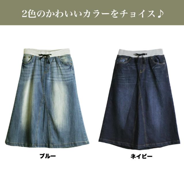 ★☆大きいサイズレディース デニムスカート ミモレ丈 Aライン ウエストリブ 春夏 秋 L LL 3L 4L 5L ブルー ネイビー 新入荷 メール便不可☆★