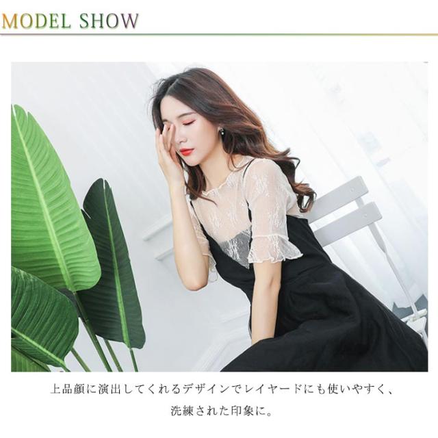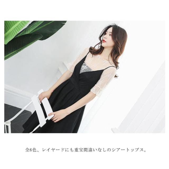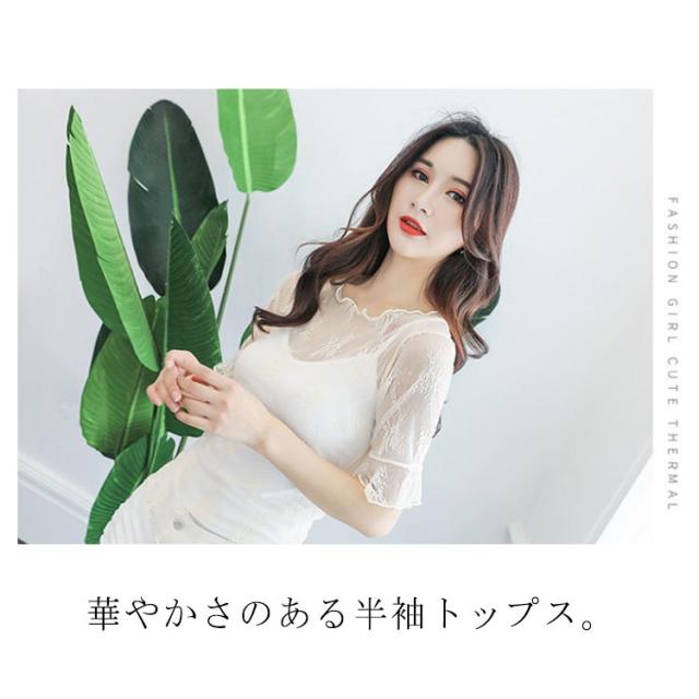 シアートップス 半袖 レディース シースルー インナー 春夏 おしゃれ 上品 透け プルオーバー ボートネック 薄手 重ね着 レイヤード フレア袖 5分袖 エレガント ママ 普段着 パーティー メロウフリル フリルネック L XL 2XL 3XL