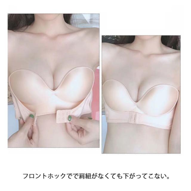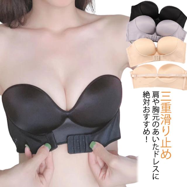 ストラップレスブラ レディース ストラップレス ブラ チューブトップ 落ちない フロントホック ずれない 盛れる ブラジャー 盛りブラ 小胸 脇高 ノンワイヤー ベアトップ オフショルダー インナー ドレスインナー ブライダルインナー