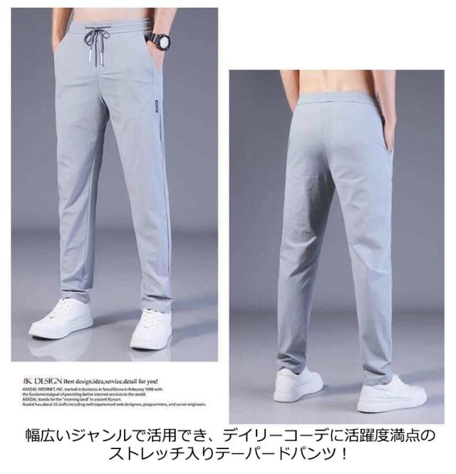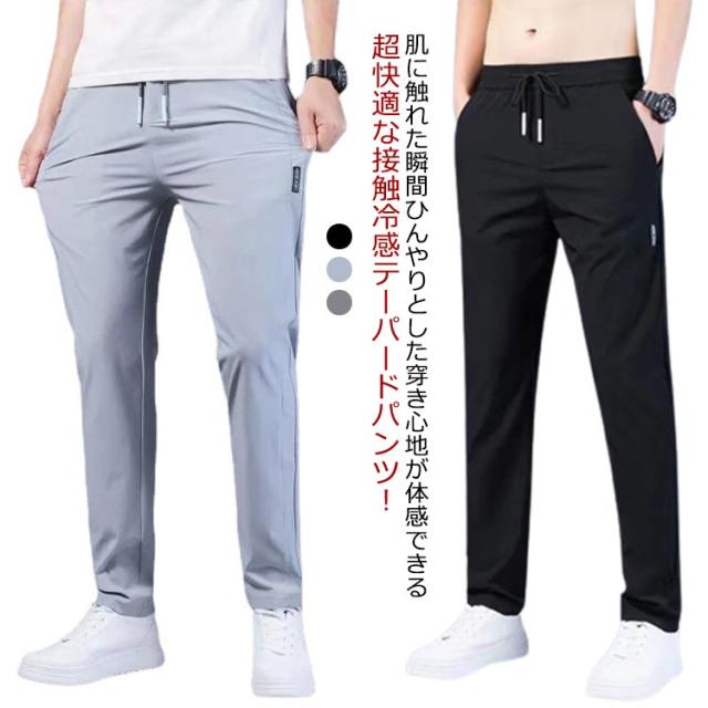 送料無料 接触冷感 テーパードパンツ メンズ 冷感パンツ パンツ ストレッチ アイスシルク アイスシルクパンツ ウエストゴム 無地 イージーパンツ アイスシルクロングパンツ ボトムス ズボン 人気 おしゃれ 春 夏 服 トップイズム