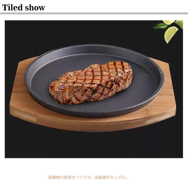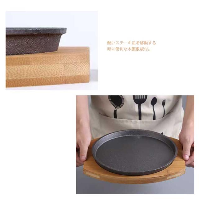 ステーキ皿 鉄板 大判 IH対応 業務用 鉄器 鋳物 鋳型 プレート お皿 ハンバーグ 料理用 調理 レストラン ガス対応 直火対応 敷板付き 送料無料