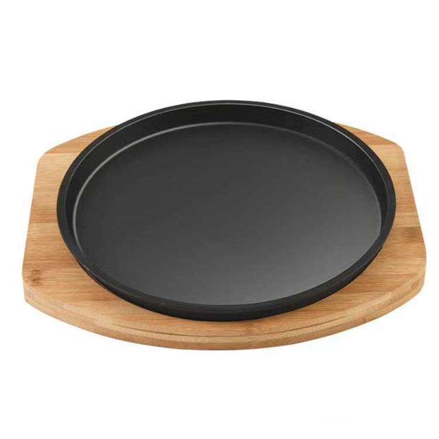 | 自宅でレストラン気分が味わえる鉄鋳物製ステーキ皿。 鉄鋳物の重厚なつくりで、高級感がたっぷり。 熱いステーキ皿を移動する時に便利な木製敷板付。 ガス火はもちろん、IHクッキングヒーターでもオーブンでも使用OK。 スパゲッティーや焼そばなど、いろいろお使いいただけます。 | |