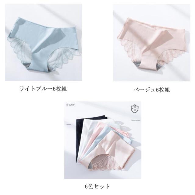 6枚セット シームレスショーツ 薄い軽い アイスシルク パンツ フルバックレース ショーツ インナー 下着 レディース レースショーツ 可愛い パンティー 大きいサイズ スダンダードショーツ 響かない 送料無料