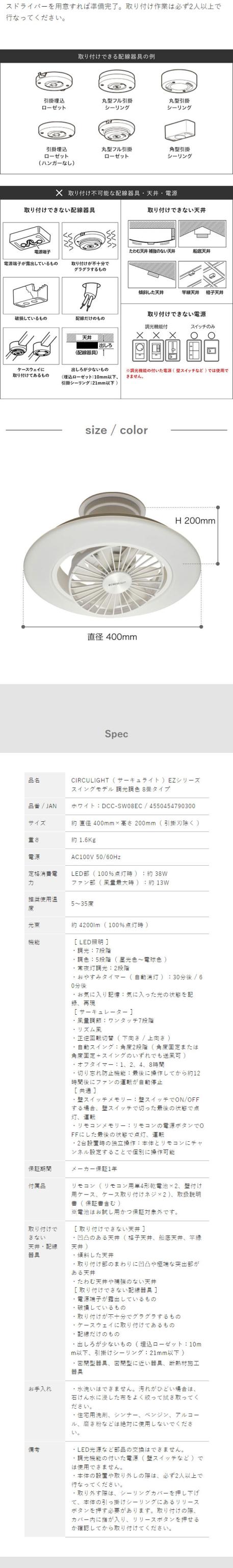 [ CIRCULIGHT EZシリーズ 調光調色 8畳タイプ ]シーリングファン サーキュライト【正規店】照明 ファン付き 首振り シーリングライト シーリングファンライト 8畳用 おしゃれ リモコン 調光 LED 扇風機 逆回転 静か 天井照明 薄型 リビング DCC-SW08EC
