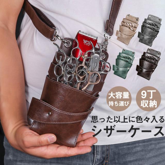 シザーケース シザーバッグ ウエストポーチ プロ仕様 プレゼント 美容師 理容師 ハサミ9丁収納 手作り ポシェット 腰掛け 軽い