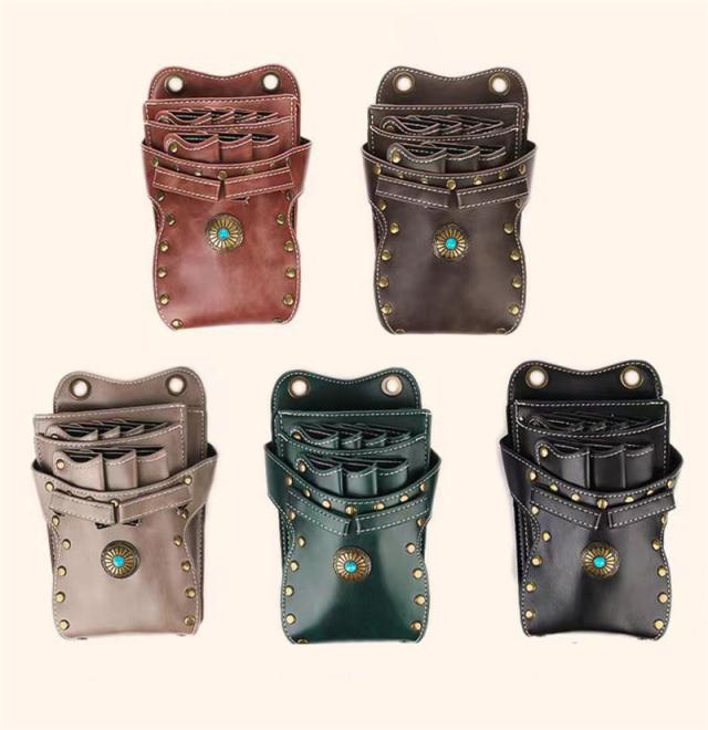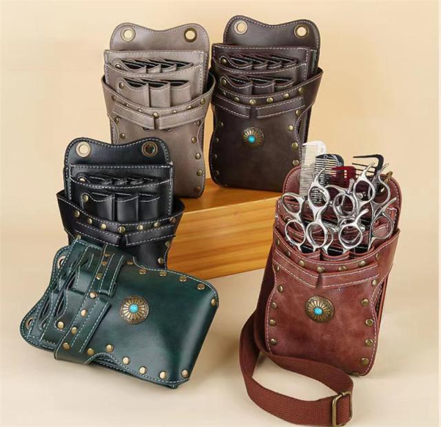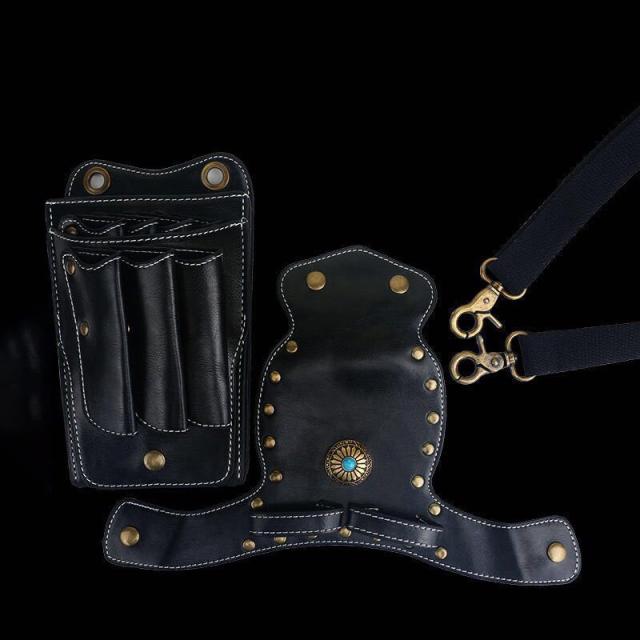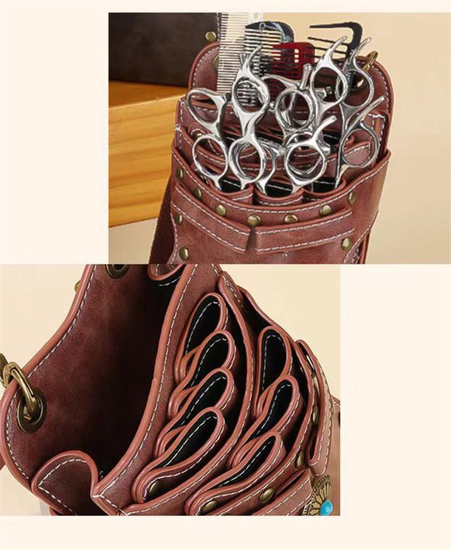 シザーケース シザーバッグ ウエストポーチ プロ仕様 プレゼント 美容師 理容師 ハサミ7丁収納 手作り ポシェット 腰掛け 軽い