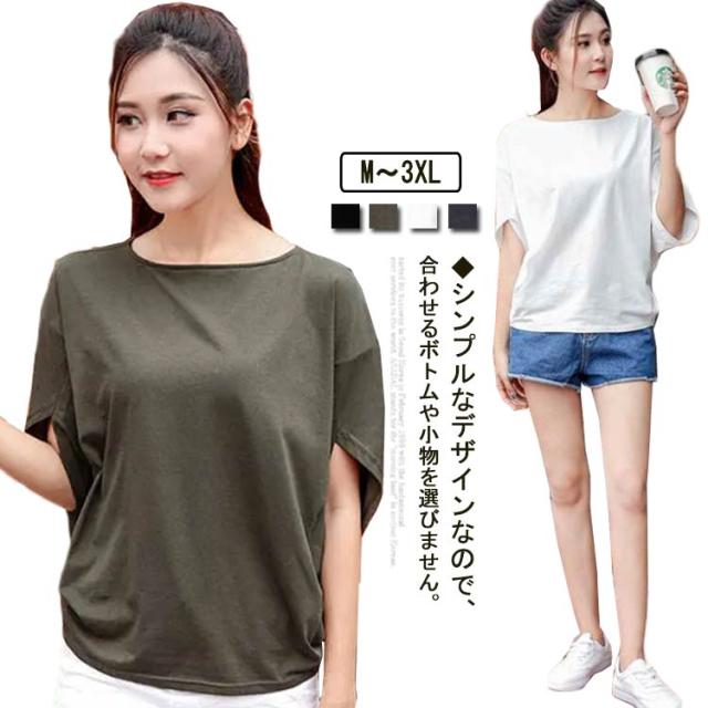 ブラウス プルオーバー レディース 春 夏 tシャツ 半袖 ドルマン ドルマン袖 ドルマンtシャツ カットソー 大人 大きいサイズ 春 きれいめ ゆるtシャツ トップス カットソー ストレッチ スウェット シンプル 上品 5分袖 体型カバー 春夏 30代 40代 50代 送料無料