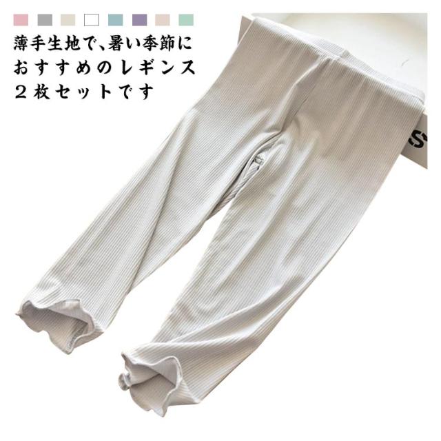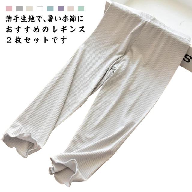 【送料無料】キッズ 夏用 薄手 レギンス スパッツ 2枚セット 薄手パンツ フリル リブパンツ 吸汗速乾 女の子 涼感 接触冷感 ジュニア ひんやり 子供服 ベビー 赤ちゃん 無地 日焼け対策 お肌に優しい お出かけ 冷房対策