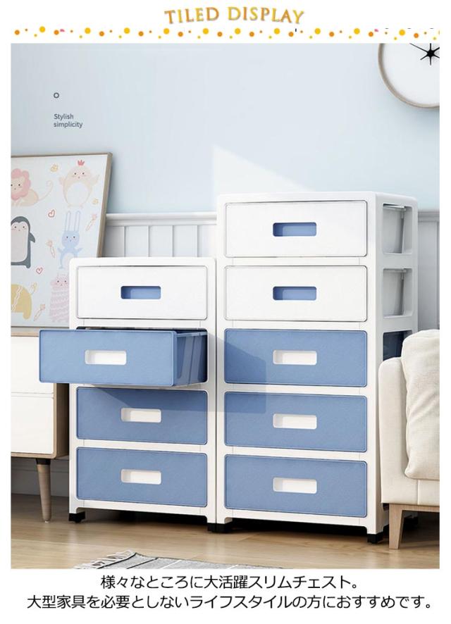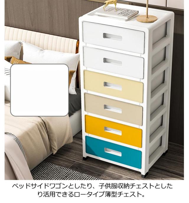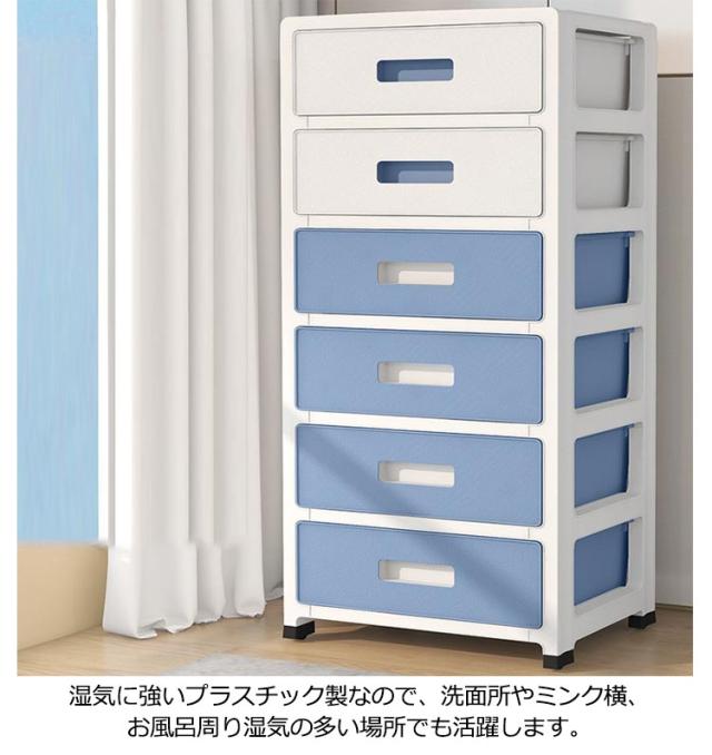 | リビングやダイニングだけでなく、バスルームでも使用できるハイチェスト。 様々なところに大活躍スリムチェスト。大型家具を必要としないライフスタイルの方におすすめです。 引き出しは抜け落ち防止ストッパー付きで、不意の落下による破損やケガを防ぎます。 湿気に強いプラスチック製なので、洗面所やミンク横、お風呂周り湿気の多い場所でも活躍します。 ベッドサイドワゴンとしたり、子供服収納チェストとしたり活用できるロータイプ薄型チェスト。 中身が見えないタイプもあり、生活感を隠し、リビングに置いてもスッキリと馴染みます。 スムーズに移動できるコロ付きでお掃除など時もラクラク。 | |